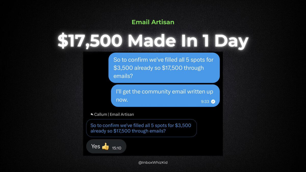 3) $17,500 made in 1 day from a new offerFrom random Gumroad emails to a proper revenue system generating consistent monthly income.The difference?Professional infrastructure + strategic campaigns = predictable results.